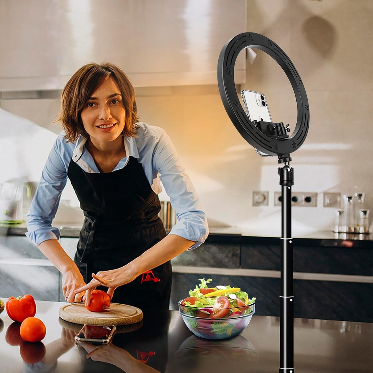 - 【Package Included】The product package includes a 10” ring light, an extended tripod stand, a hot shoe mount, a metal ball mount, a phone clip and bluetooth remote.