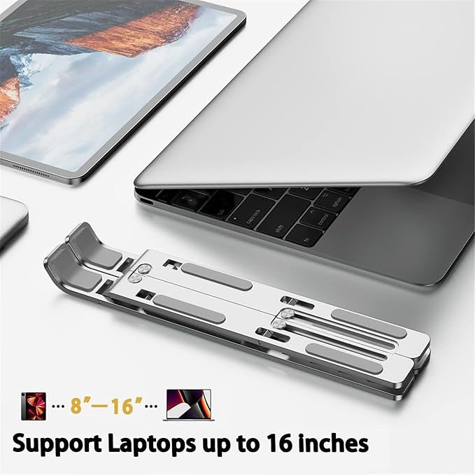 - 📱 Suitable for All Laptops: The adjustable stand is compatible with laptops from 8 to 16 inches. It is easy to store, take up little space, and easy to carry, fitting in your backpack or bag.